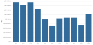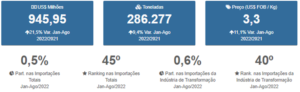 Em valores, 2020 fechou com US$ 375.267.896, enquanto 2022 registra US$ 733.361.587 nas importações até julho.