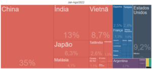 E, como consequência, coloca a China como a maior fornecedora do Brasil, ocupando em torno de 35% do fornecimento.